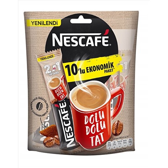 Nescafe 2si 1 Arada 10x11 gNescafe 2+1 Arada 10Lu Eko PaketNescafe tutkunlarına tek yapımlık olan poşet ürünler eşlik ediyor. Şöyle ki sıcak suyun içerisine karıştırarak kısa süre içerisinde hazırlayabileceğiniz poşet ürünlere yer verilmekte. Nescafe markası tarafından farklı alternatifler eşliğinde kahvelerin sunulduğu da açık durumda. Mesela 3’ü bir arada ya da 2’si bir arada gibi türleri eşliğinde kahve tutkunlarını karşılıyor.Nescafe 2+1 Arada 10Lu eko paketson yılların favorisi haline gelmiştir. Nitekim şekerden uzak duranların genel olarak ikisi bir arada olan Nescafe tercihinde bulundukları açık durumda. Hatta şekerli olarak tüketenler dahi tercih ediyor. Çünkü 3’ü bir arada olan Nescafe içerisinde yoğun şeker mevcut durumda. Sonuç olarak şekerini kendisi ayarlamak isteyenler 2’si bir arada olan Nescafe tercihinde bulunabilir.Gıda Gross içerisinde 10’lu ekonomik poker şeklinde satışa hazır olan ürünler arasındadır. Satın almak isteyenlere makul fiyatlar eşlik ediyor.000000000100015842