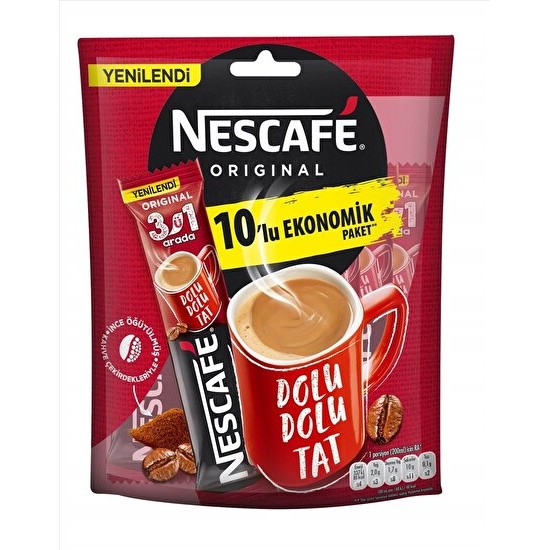 Nescafe 3ü1 Arada 10x17,5 gNescafe 3ü 1 Arada 17,5 Gr (10 Adet)Mükemmel bir uyum yakalamak isteyen bu ürünümüz içinde kahve, şeker ve krema ??karışımı barındırmaktadır. Kahve içinde şeker arayanların en çok istediği ürünlerin başında duran 3ü 1 arada Nescafe kalitesinden her zaman bahsedilmektedir. Nescafe 3ü 1 arada 10 tane paket halinde satılmaktadır. Fiyat olarak da miktar olarak da uygun bir satış imkanı sağlar.Ürünler en iyi kahve çekirdeği ve kremanın birleşiminden üretilmektedir.Nescafe 3ü 1 Arada 17,5 Gr (10 Adet)evlerinizde ya da ofisinizde kolayca hazırlanabilme imkanı veren ve yılların tanınan kahve lezzeti ile damaklarınızı şenlendirebilir. Gün boyunca yorgunluğun tadını çıkarmak için 3ü 1 arada Nescafe porsiyonundan sadece bir bardak içmeniz bile yeterlidir.Arkadaşlarınıza ve misafirinize hizmet vererek keyifli anlar yaşatabilirsiniz. Günün en gergin anında, 1 bardak kahve ile mola verebilir ve işinize daha dinç bir şekilde devam edebilirsiniz. Nescafe 3ü 1 arada kahve kategorisinde paket içinde 10 çeşit kahve vardır. Toptan satış sitemizi kullanarak hızlı bir şekilde sipariş verebilirsiniz.000000000100002782
