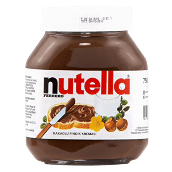Nutella Kakaolu Fındık Kreması 750 gÜrün Adı: Nutella Kakaolu Fındık Kreması 750 gİçindekiler: Şeker, bitkisel yağ (palm), fındık (%13), yağsız süt tozu (%8.7), yağı azaltılmış kakao tozu (%7.4), emülgatör: lesitinler (soya), aroma verici (vanilin).Alerjen Uyarısı: Sert kabuklu meyveler, süt, soya fasulyesiMenşei: TürkiyeÜretici Adı: Ferrero Türkiye Çikolata ve Tarım Ürünleri Sanayi ve Dış Ticaret A.Ş.Gıda İşletmecisi ve adresi: Ferrero Türkiye Çikolata ve Tarım Ürünleri Sanayi ve Dış Ticaret A.Ş. - Balmumcu Mah. Gazi Umur Paşa Sokak No:27, D. 4-6-8, 34349 Beşiktaş/İstanbul/Türkiyeİşletme Kayıt Numarası/Onay Numarası: TR-45-K-004046Net Miktar: 750 gEnerji ve Besin Öğeleri Tablosu (Beslenme Bildirimi):Enerji: 539 kcal/2252 kjYağ: 30,9 gDoymuş yağ: 10,6 gTrans yağ: <0,1gKarbonhidrat: 57,5 gŞekerler: 56,3 g Lif: 3 gProtein: 6,3 gTuz: 0,107 gÜrün açıklamaları (Özel muhafaza ve/veya kullanım koşulları.): Buzdolabı dışında, serin ve kuru bir yerde muhafaza ediniz.000000000100018120