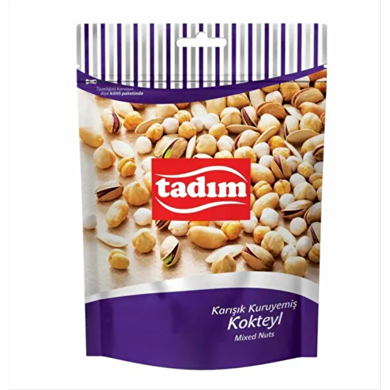 Tadım Karışık Kuruyemiş Kokteyl 180 gKuruyemiş konusunda “Türkiye’nin tadı tuzu” olarak bilinen Tadım, mükemmel bir karışımla karşınızda: Tadım Karışık Kuruyemiş Kokteyl. Çerezin en eğlenceli ve bereketli hali…Bu pakette neler yok ki… Antep fıstığı, yer fıstığı, tuzlu sarı leblebi, beyaz leblebi, fındık, kabak çekirdeği… Tadım Karışık Kuruyemiş Kokteyl , tam bir kuruyemiş festivali. Bu yemişler, her zamanki gibi Tadım güvencesi ile özenle seçilip derlenir. Yine aynı özenle kavrulduktan sonra paketlenir ve paketinde uzun süre tazeliğini korur. Bu sayede de besin değerini hiç kaybetmez.Yemekten önce veya sonra, aile arasında, misafir ağırlarken, televizyon izlerken, ders çalışırken, arkadaş buluşmalarında sohbetlerinize ağız tadı katmak için, hatta günün ortasında kendinize ideal bir enerji takviyesi yapmak istediğinizde… Tadım Karışık Kuruyemiş Kokteyl yemek için bahaneniz çok.Kuruyemiş severler yaşadı. Bu hazır karışım sayesinde en sevdiğiniz çerezler, artık istediğiniz an elinizin altında.000000000100017313